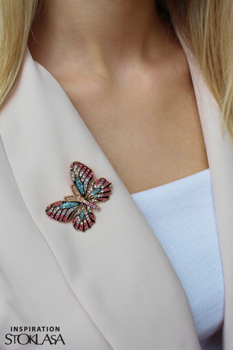 Spilla, motivo: farfalla, con strass